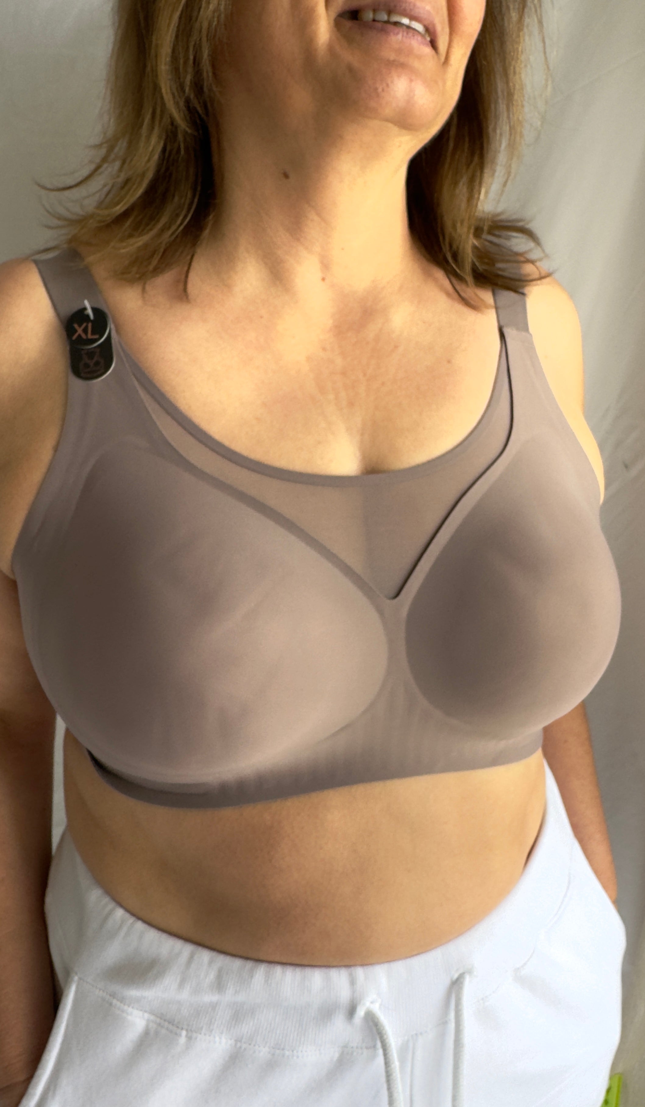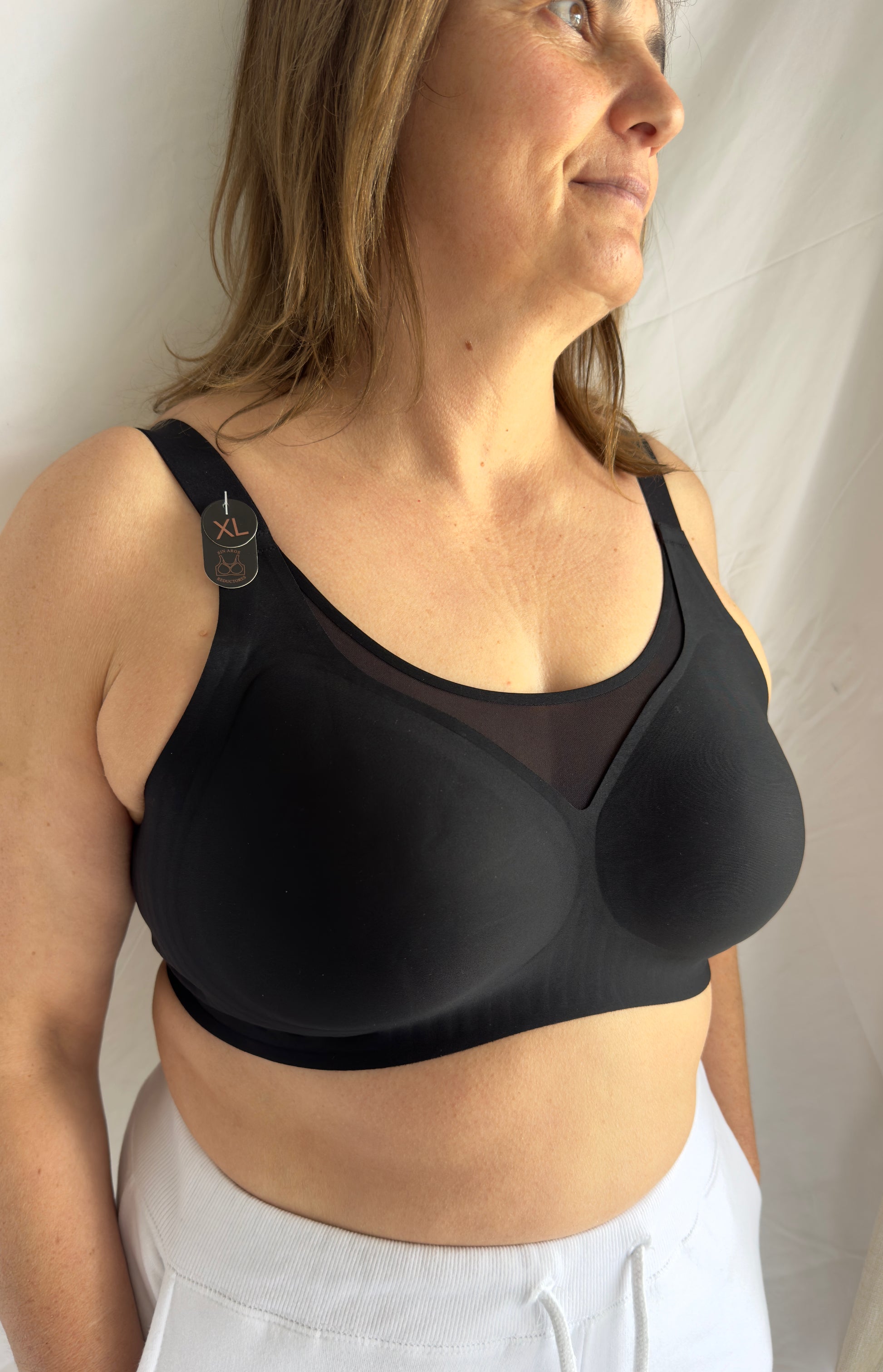 Soutien sem aro, pensado especialmente para copas grandes C e D. Com design largo nas costas e sem costuras este soutien garante um conforto exclusivo.
